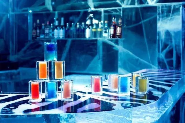 顾名思义就是全部以冰块打造的酒吧。伦敦的第一家冰吧 Absolut Ice Bar London,是由瑞典著名的伏特加酒品牌 ABSOLUT 与瑞典北极地区的 Ice Hotel (冰晶旅馆)以及新创立的 Below Zero London 公司合作的。Ice Bar 不仅桌椅都是冰块制成的,甚至连酒杯都是用从瑞典Torne河空运过来的纯冰打造的。