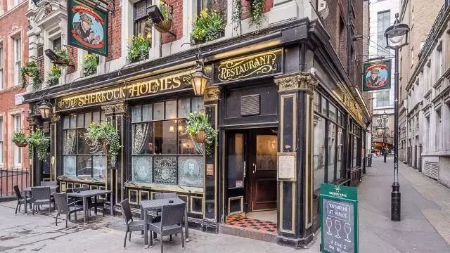 福尔摩斯迷们一定不能错过的一家酒吧。夏洛克·福尔摩斯酒吧(Sherlock Holmes Pub)位于伦敦市中心的Charing Cross附近。看过了贝克街221B的福尔摩斯博物馆还意犹未尽的同学们不妨来这里走走,在这个酒吧中,不仅能看到印刻着叼着烟斗的侦探先生的牌匾,里面也到处挂着他的画像和资料,餐厅内还有一个小博物馆呢。通往二楼楼梯间两侧的墙壁上挂着的都是有关福尔摩斯的资料和画像,二楼餐厅的墙壁上内容更丰富。在侦探们的注视和环绕下吃东西,感觉很特别啊。