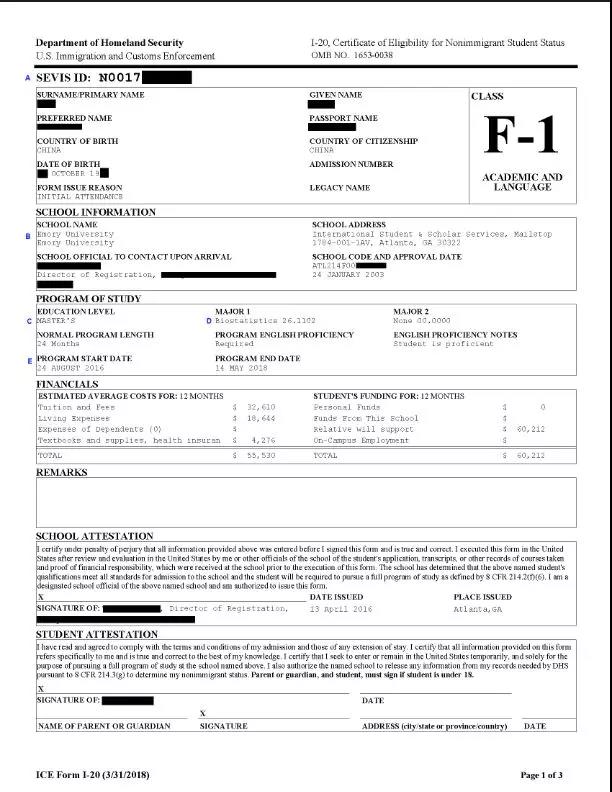 开始前所有的前提,你需要一个由美国大学发出的有效的I-20