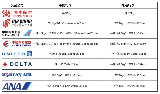 行李载重:能带多少行李会根据购买的机票有所变化,需要提前和航空公司核对。但是也有一些普遍规律,以直飞纽约航班的经济舱为例: