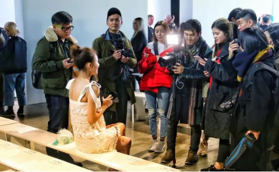 网红可以说是无处不在,只要有流量就可以!从秀场门口的街道开始,到前台后台,走廊,到处都有举着相机和补光灯的网红。