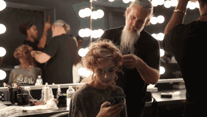 另一种就是资深模特啊超模。不管你是化妆师,发型师,造型师,还是场控,对她们来说都像空气一般。她们会一脸冷漠地玩手机,刷instagram,偶尔瞪一眼凑过来干扰她们玩手机的摄影师。