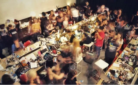 但还好模特们大部分时间都是坐着,身边环绕着各种造型师发型师化妆师。