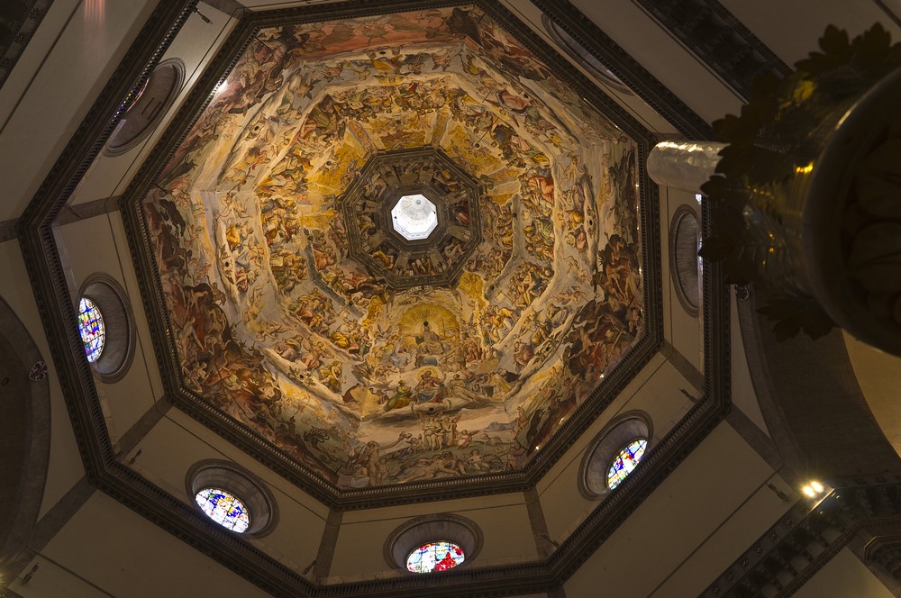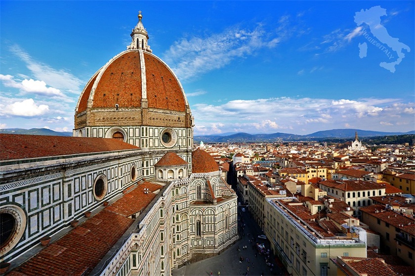 圣母百花大教堂始建于1296年,从这座大教堂开始,欧洲建筑正式从"哥特时代"进入"文艺复兴时代"。为了建成世界上最漂亮的建筑,这座教堂竟然一直延续了150年才最终建成,建成后果然不负众望,教堂成了佛罗伦萨的代名词,穹顶也成了那个时代的标志和楷模。多年之后米开朗基罗在接受设计圣彼得大教堂的穹顶时曾不无羡慕地说:"我可以盖个比佛罗伦萨教堂圆顶更大的圆顶,但绝对无法和它媲美。"