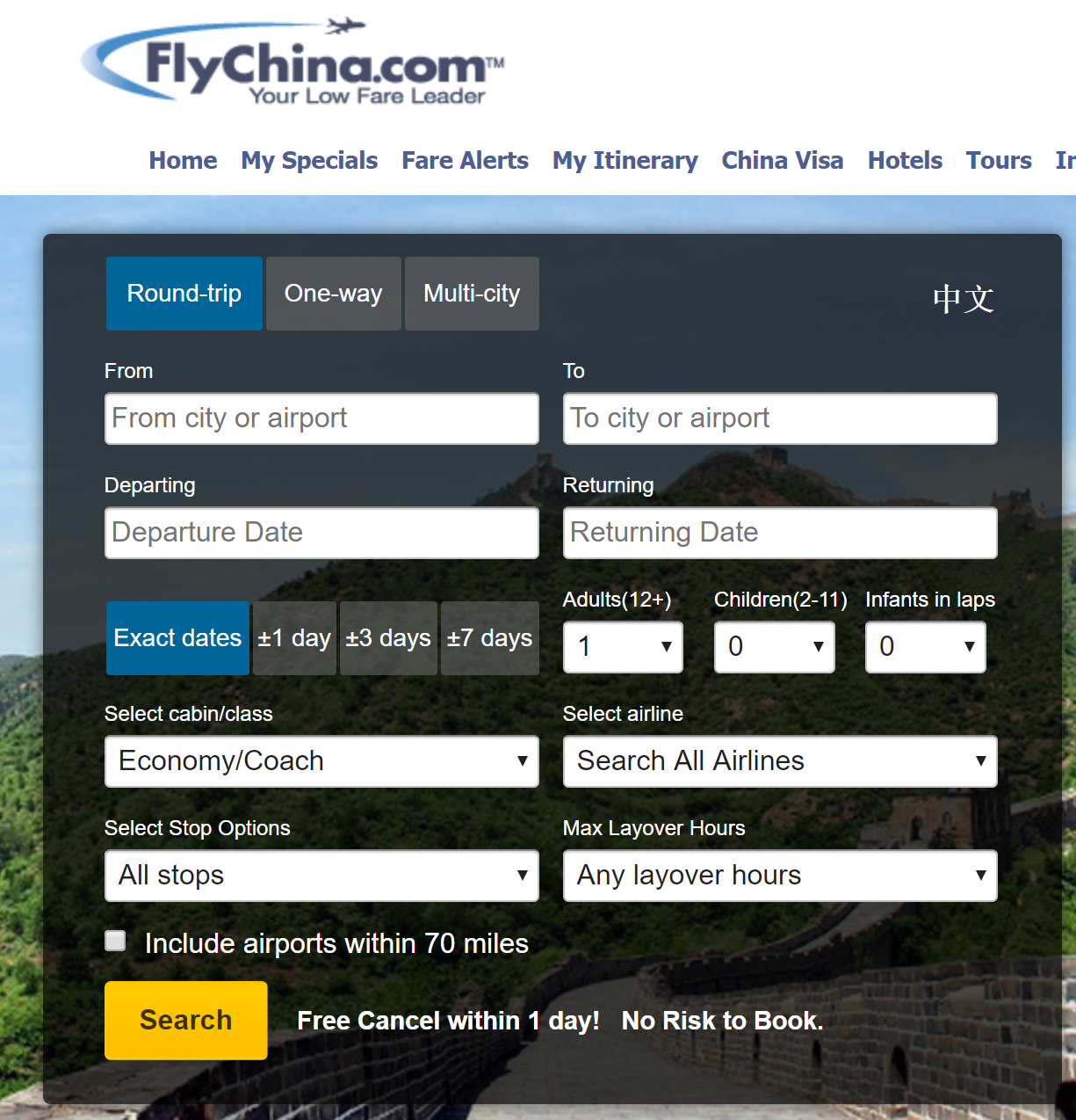 网站链接: http://www.flychina.com/